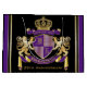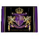 Skapa din mycket egna vapensköld, familjvapensköld eller Emblem med denna härliga, klassikervapensköld eller skydda designen. Randar för kungliga lilor dekorerar en skydda som överträffas med den guld- kronan och flankeras av medeltida heraldiskt lejont eller grip. Ett matcha bästa baner rymmer din personligt bröllp daterar/födelse daterar/slogan eller stridsrop. Skydda har utrymme för din monograminitialer. Det nedersta banret bär ditt efternamn. Det finns också utrymme som är nedanfört för ditt favorit- citationstecken, motto eller meddelande. Byt ut ta provtexten med ditt eget för en personliggåva. Mig som är designad detta som fungerar för familjer, par och individer. Gör en underbar gåva för internationell heraldikdag, medeltida eller Fantasi-themed partyn, bröllop, årsdagen, födelsedagen, pensionen, befordran, fars dag, ungkarlpartyet, möhippan, studenten och andra speciella tillfällen.