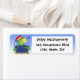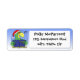 En fånig parrot i grönten slösar ut Sång i julen i dessa roliga adressetiketter i älskare. Den tecknad fågeln bär en julklapp på huvudet och håller bok i sång. Bakgrunden är att det vita snö faller. Perfekt att komma in i helgdag.