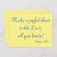 Ett vykort med inspirerande lovord, den här designen visar: "Gör en glatt rop till Herren, allt du landar!" Psalm 100:1 är skriven i vackert blått teckensnitt på gultens bakgrund. Öga-fånga och härlig, dina kära med glädje här i hälsning.