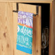 Släng ut strandviberna och sommarkänslan i ditt vardagsliv med det här underbara värdet, kvaliteten, färgen, roligtens kökshandduk, designad av PiccoGrande. Den har Beach-citat med vit text och handflatan träd silhuettes över en romantisk vattenfärg Sunset vid havet.