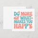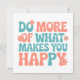 Omge dig själv med glädje och positivitet med det härliga hälsningskortet "Gör mer av det som gör dig Lycklig", som accentueras av söta, färgstarka blommor. Denna trevliga, motiverade teckning är en försiktig påminnelse om att ta till sig det som ger dig glädje, jaga dina drömmar och prioritera självvård. En underbar gåva till medvetenhet om psykisk hälsa, personlig tillväxtentusiaster eller någon som behöver lite daglig inspiration.