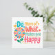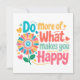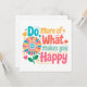 Omge dig själv med glädje och positivitet med det härliga hälsningskortet "Gör mer av det som gör dig Lycklig", som accentueras av söta, färgstarka blommor. Denna trevliga, motiverade teckning är en försiktig påminnelse om att ta till sig det som ger dig glädje, jaga dina drömmar och prioritera självvård. En underbar gåva till medvetenhet om psykisk hälsa, personlig tillväxtentusiaster eller någon som behöver lite daglig inspiration.