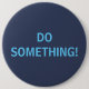 Rund knappnål visar ljusblå blått vid mörk blått brev: "GÖR NÅGONTING!" Demokrater, liberaler, framstegsvänliga måste rösta! Gör er politisk och göra er röst hörd. Precis som Michelle Obama säger.