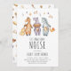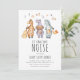 Cute Kön Neutral Baby Shower-inbjudan med titeln "Låt oss lite buller", tre adjektiga afrikanska djur som spelar muskelinstrument (zebra, hippo och giraffe) och en modern mall som är roligt och enkel att anpassa med dina egna händelsedetaljer.