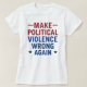 Starkt påstående mot politiskt våld med fet röd och blå typografi. Perfekt för människor som värdesätter fred, demokrati och icke-våld.
