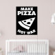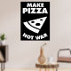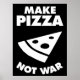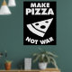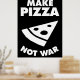 Gör Pizza inte Krig Pizza-design. Typografisk design med roligt citat, roligt talesätt. Lustigt typografiskt format med pizzabaktura, pizzaelagare. Lustigt pizzababud. Lustigt pizza ord. Ät pizza. Pizza älskare Pizza-design med rolig typografi. Svartvit version