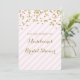 Personliginbjudningskort för möhippan med guld- konfettiar mönstrar, ljusa randar för för pastellrodnadrosor och vit och handskriven stilbokstäver. Anpassade med din text.