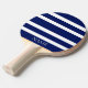 Denna beställnings- pingpong paddlar har en modern klassikerstil med marinblåa och vitrandmönster och beställnings- vitnamntext på marinblått randbaner. Skräddarsy den kända texten för att göra den personlig.