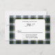 Snyggt la responskort från bröllop på populär mörk blått, grönt, svart, vit och gult Scottish Gordon Dress mönster. Ett vitt textområde, med bilder från ett tunt guld ram, har redo för anpassningsbar att anpassa för speciella dag. Matchande produkter är tillgängliga.