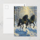 Gorgeous Black Horses Wreaths in Winter Woods Vykort