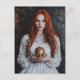 Gorgeous Red haired Woman With a Gold Skull Vykort