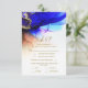 En underbar alkohol bläck tvättat bröllop OSA med en slående och ovanlig bakgrund. Elegant bröllop-sviten har en konstnärlig tvätta av bläck i ametyst, blått, orange och guld. Lägg enkelt till dina val av bröllopsmåltid med Zazzles anpassning till verktyg. Gorgöst Indigo Blue Orange Guld Bröllop OSA Card. Se samlingen för matchande artiklar.