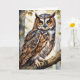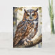 Vacker färgrik träduggla som vilar i träden på det här tomma vykortet.