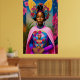 En bild av en afrikansk prinsessa med vingar och blommor i hennes hår. Kläder med vacker klänning med rosa. Det här är en bild som skapas av AI med blommigtens temadesign.