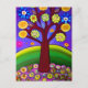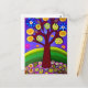 Skicka någon som du tänker på det här söt färglösa vykortet för vismbilder. Träd i gult, vitt, blått och lila. AI-genererad konst. generativektent innehåll