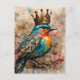 En underbar blå fågel i ett blandat medium i guld krona skapade AI konst