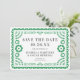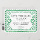 Denna vackra papelpiado inspirerade bröllop spara datum-design har en grönt eller en ram och mörk grått-text, vit bakgrund och modern typografi. Den här eleganten är ändå ett fantastiskt val för ett latinskt bröllop- eller Mexiko-bröllop. På baksidan finns ett eget "fullt-utfall"-vågrät som kan tas bort om du vill.