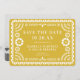 Denna vackra papelpiado inspirerade bröllop spara datum-design har ett ornat ram och text i vit, djup gult och modern typografi. Den här eleganten är ändå ett fantastiskt val för ett latinskt bröllop- eller Mexiko-bröllop. På baksidan finns ett eget "fullt-utfall"-vågrät som kan tas bort om du vill.