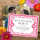 Denna vackra papelpiado inspirerade bröllop spara datum-design har en shock rosa ornat ram, mörk grått-text, vit bakgrund och modern typografi. Den här eleganten är ändå ett fantastiskt val för ett latinskt bröllop- eller Mexiko-bröllop. På baksidan finns ett eget "fullt-utfall"-vågrät som kan tas bort om du vill.