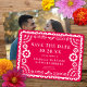 Den här vackra papelpikonen inspirerade bröllop spara datum-designen har ett ornat ram och text i vitt, shock rosa och modern typografi. Den här eleganten är ändå ett fantastiskt val för ett latinskt bröllop- eller Mexiko-bröllop. På baksidan finns ett eget "fullt-utfall"-vågrät som kan tas bort om du vill.