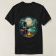 Whimsical night scene of a gorilla serenading by a campfire with a curious alien companion. Rich greens and glowing moonlight create a cozy, adventurous vibe.