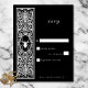 Fira ditt eviga kärlek med ett bröllop-svarskort utan middagsval som din bindning är lika djärv och oförglömlig. Med en dramatisk svart bakgrund, en elegant gotisk vit gräns och ett känsligt spindelmotiv, anger den här designen tonen för en natt med romantik och mysterium. Perfekt för par som vågar anamma mörkens skönhet och djupet av verkligt engagemang. Skapat av Farmhouse Press.