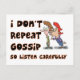 En humoristisk syn på skvaller. En tecknad på två dam. En viskar i de andra örat. Orden jag inte upprepar skvaller, så lyssna noga på dem.