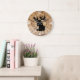 Moose Clock with Wooden Background Det är dags att visa upp dina favoritbilder, foton och text med en anpassningsbar runt väggklocka från Zazzle. Denna väggklocka är utrustad med två storlekar och trycks på ett dynamiskt sätt med AcryliPrint®HD-processaa för att säkerställa högsta möjliga visning för innehåll. Beställ den här anpassningsbarna runt väggklockan för dina väggar eller ge till vänner och familj som en gåva till en tidlös skatt.