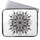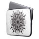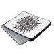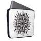 Gothic mandala laptop sleeve med löv och ormar digitalt uttagna i svartvitt, med skugga.