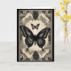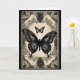 Vackra svarta fjärilar läggs ovanpå ett ornat svart och elfenben ram, mot svart bakgrund, på detta vackra Goth-födelsedagskort.