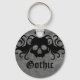 Tvätta nyckelringen med en svart vampyrskalle med fangs och snävt vingar med ett hjärta på ovansidan mot en grått grungy på bakgrunden. Texten lyder "gotisk", men du kan enkelt ändra det till ditt namn.