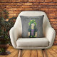 Goth Girl Grönt Hat Tattoos på Grått Kudde