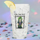 Denna glastumör för drycker har en söt Goth-flicka med grönt ögon och hår som bär en disketterad grönt med spindelnät ansikte tatuering och lila måne arm-tatuering i en taggsvart ram av pinnar. Anpassa texten längst fram och tillbaka med mallarna.
