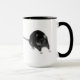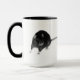 En gotisk utformad kaffemugg med svart tjaller på den.