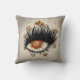 Konstig öga kudde med en digital illustration av ett kvinnligt öga med bruten iris av lava och långa ögonfransar som slutar i bisarblommor med vinklade petaler i ett grumligt grått himlar.