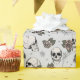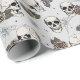 Handdragen i svart bläck, denna pappra förpackning har en vacker mönster av döskallar, ro och spindelnät i grädde och toner, allt mot en elegant lätt grått-bakgrund.