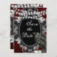 Ornate Silver Ram, Kråka och String Ljus på Red and Black Background Gothic Spara datummeddelanden från Bröllop ^