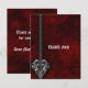 Goth Red Damask Silver Heart bröllop Tack Kort
