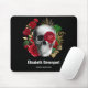 Mousepad med en god illustration av stil. Vackert röd ros och guld lämnar runt ett svart och vitt skalle.