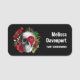 Ett namn bricka med en god illustration av stil. Vackert röd ros och guld lämnar runt ett svart och vitt skalle.