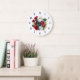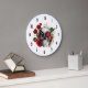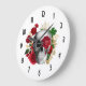 Goth Skull med Red Flowers & Guld Löv Stor Klocka