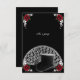 En vintageinspirerad design med svart toppmössa och vit bröllopssolfjäder med djupröda rosor på en kolsvart bakgrund. För Steampunk-, Vampire- och Goth-bröllop och evenemang.