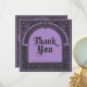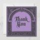 Bygga upp tidlös romantik med vårt gotiskt medeltida bröllop-tack, där kärlek och mörker går in i harmoni mellan eleganter. En slående svart och lila skapade ramarna ditt meddelande med ett intrikat löv-filigree som påminner om gamla katedraler och handtryckta manusskript. I toppen, i ord, "tack" krona inbjudan att hemsöka skönhet, som vägleder öga till vintage-stil typsnitt som framkallar en gammal charm. Perfekt för par som vågar fira kärlek med djup, drama och varaktig hängivenhet. Skapat av Farmhouse Press.