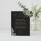 En elegant ro-blommigt svart och guld gothic bröllop firande tackar dig för mottagningskortet. Personlig med ditt speciella tackmeddelande som du anger i snyggtens typografi. Ett speciellt tack för gästerna. Designad av Thisisnotme©