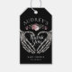Fintliga, gotiska blommigtar med vattenfärg möts av en bra perfekt med märkre för gåvor för en gotisk Halloween-temerad babydusch party. Våra söta, handgjorda konstruktioner kommer att tillföra lite stollig och elegans till din babydusch firande. Höj evenemanget med den här unika förmånstaggen som säkert imponerar på dina gäster! Vår design har våra handmålade vattenfärgade gotiska blommigtar och händer med skelett som skapar en hjärtform. Design fångar kärnan i ett sött mystiskt och charmerande gotskt tema. Ursprungligt handritat vattenfärgsgrafik och design av Moodthology Papery.