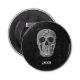 Den tjocka skallskallskallen är svartvit och vit kreativ struktur-design. Anpassningsbar tryckt namn runt flaska-öppnare. Unik, coola, trendig, modern, skrämmande vintage stil köksdekoration. Upphovsrätt Marg Seregelyi Fotography.