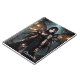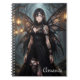 A pretty personalized notebook with an anime fairy girl dressed in a black gothic dress in an enchanted forest fantasy art.