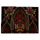Gothic Archway med Döskallar. Mot en mystisk, djup röd bakgrund ökar en stor gotisk arkway i stor skala, dekorerad med ornerade detaljer. De två höga pelarna, som är förankrade i känsliga karvingar, ger bilden en strålande elegans. I mitten i stilbanan visas ett imponerande glasfönster i nedfläckaden, vars centrala motiv är en spindel av en symbol för tålamod och kreativitet. Med två gyllene döskallar, som påminner om både transiensen och det eviga kärlek, fångas syndaren upp och utlovar en fullt i firande av mysterium och fascination.