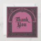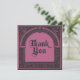 Embrace timeless romance with our Gothic Medieval wedding thank you card, where love and darkness entwine in elegant harmony. A striking black and burgundy arched design frames your announcement with intricate leaf filigree reminiscent of ancient cathedrals and hand-inked manuscripts. At the top, the words, "thank you" crown the invitation in haunting beauty, guiding the eye to vintage-style fonts that evoke an old-world charm. Perfect for couples who dare to celebrate love with depth, drama, and enduring devotion. Created by Simply Farmhouse Press.