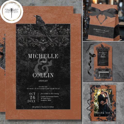 Gothic Black Raven & Black Roses Rust WeddingDesignad av Kathe Santillo